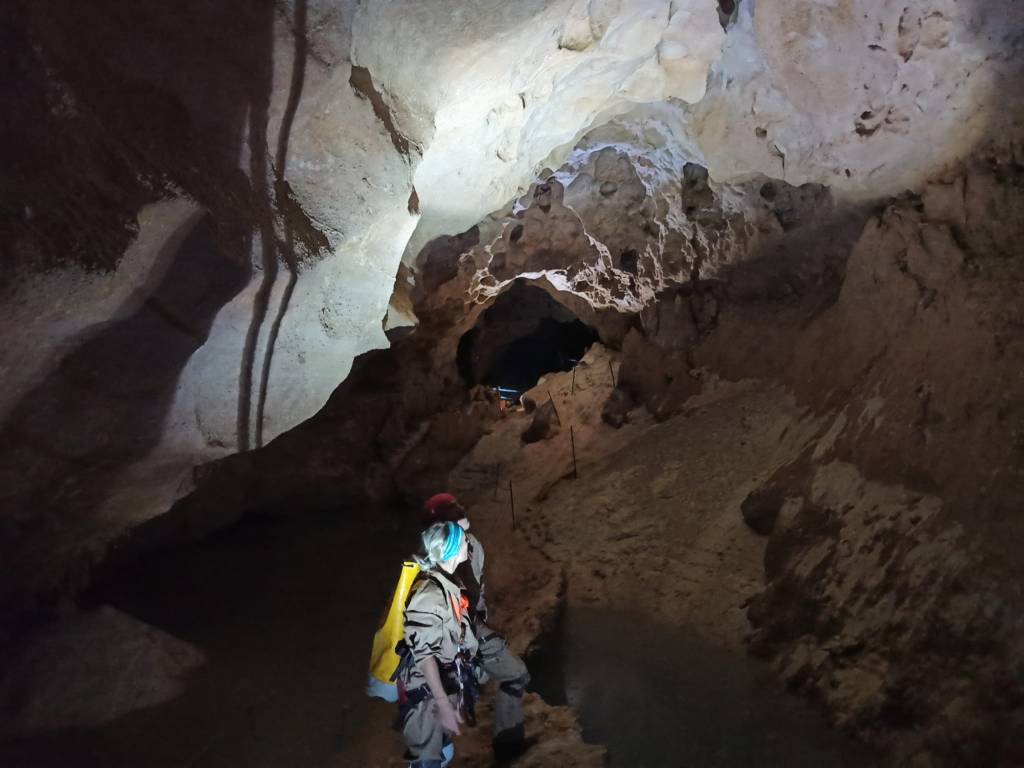 Tras varias intentonas de cruzar este inesperado sifón, no fue posible y concluimos que la cueva estaba totalmente anegada a partir de ese punto. Algo sorprendente debido a la profundidad que restaba para llegar al final de la misma, y que nos obligó a dar media vuelta, muy a nuestro pesar.