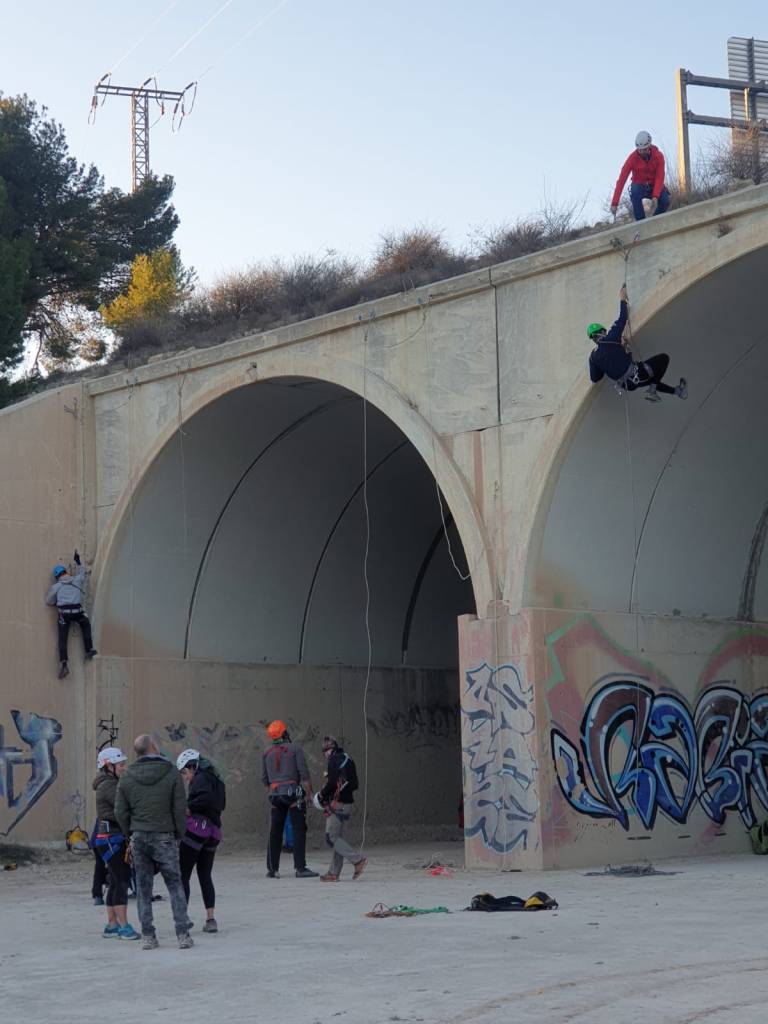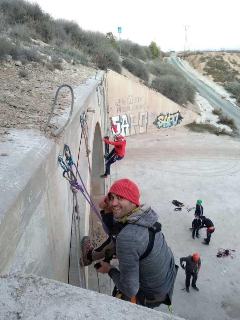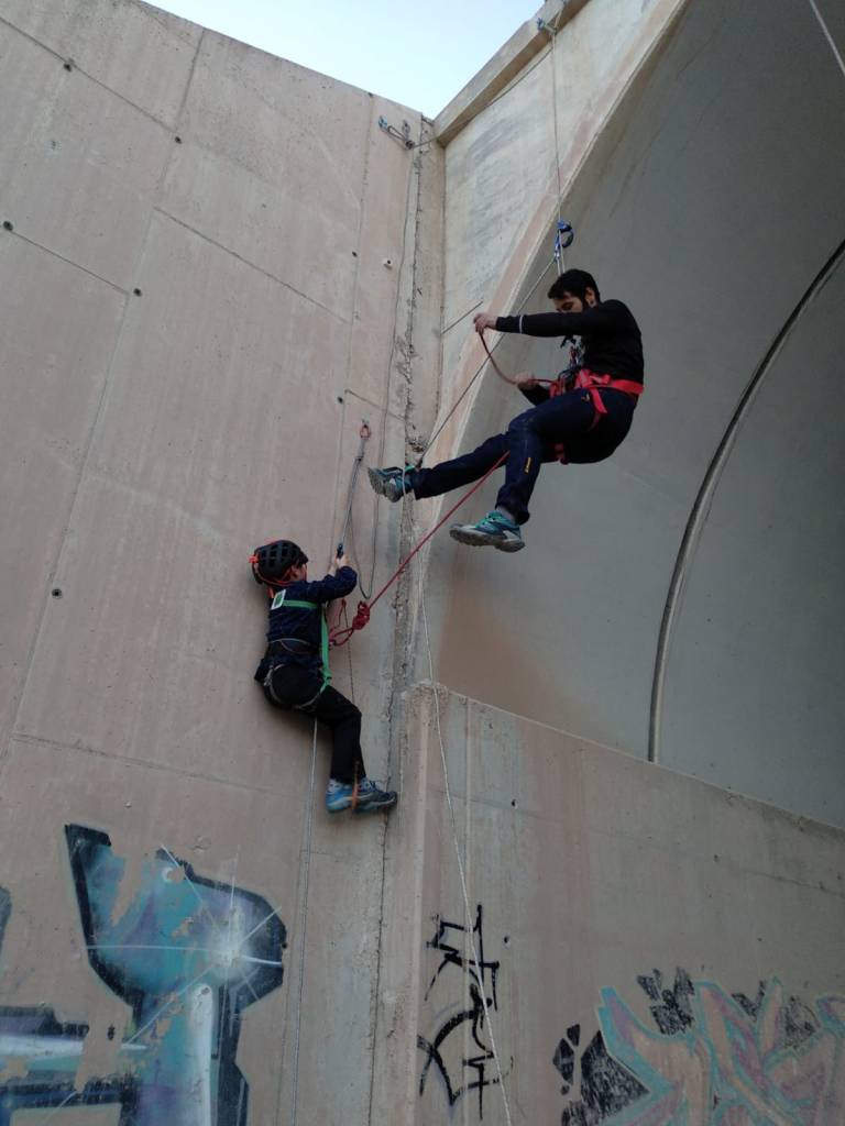 Esta tarde la hemos orientado a la práctica de las técnicas verticales necesarias para movernos dentro de las cuevas y simas. El objetivo principal es refrescar los conocimientos para el acceso del próximo fin de semana a sima destapada, aunque para algunos ha sido su primera toma de contacto.