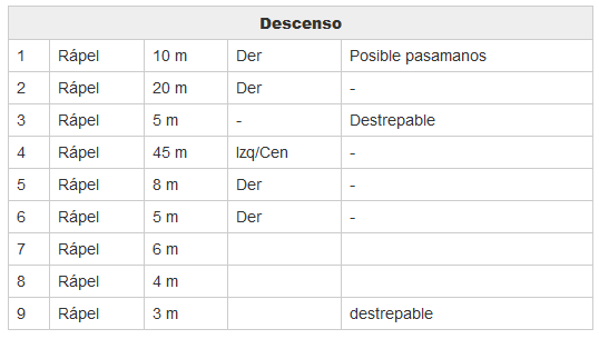 Descripción de rápeles: