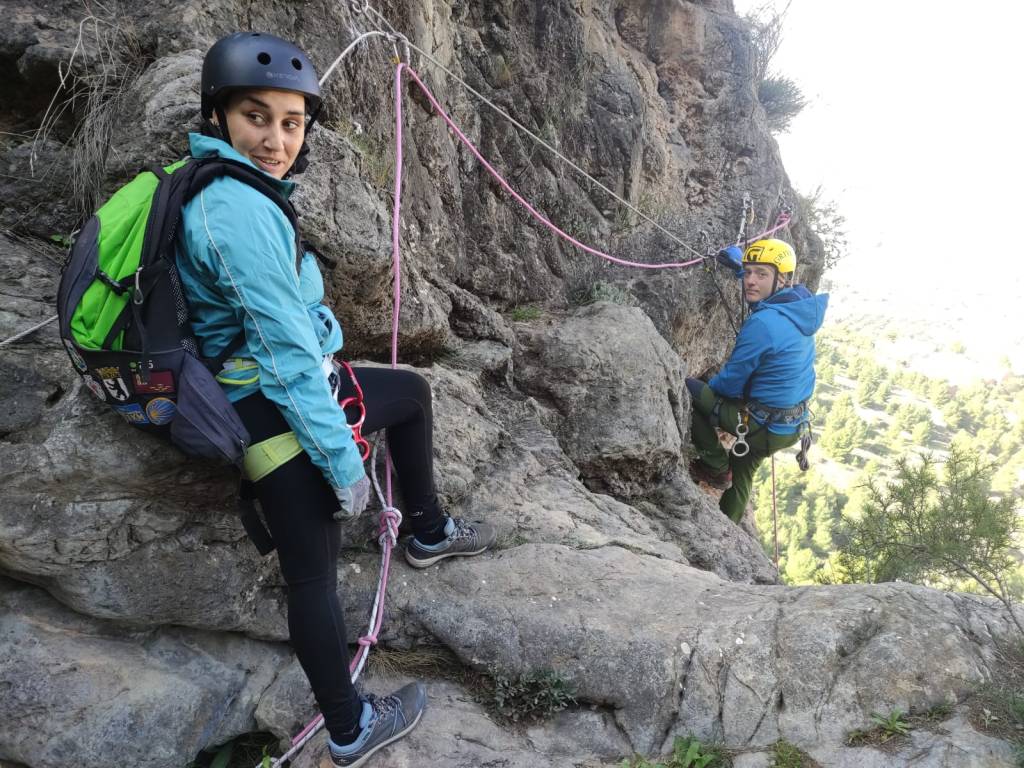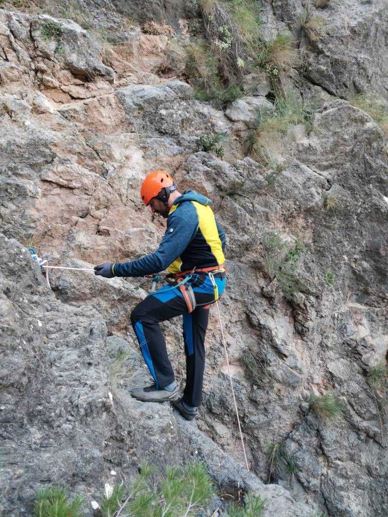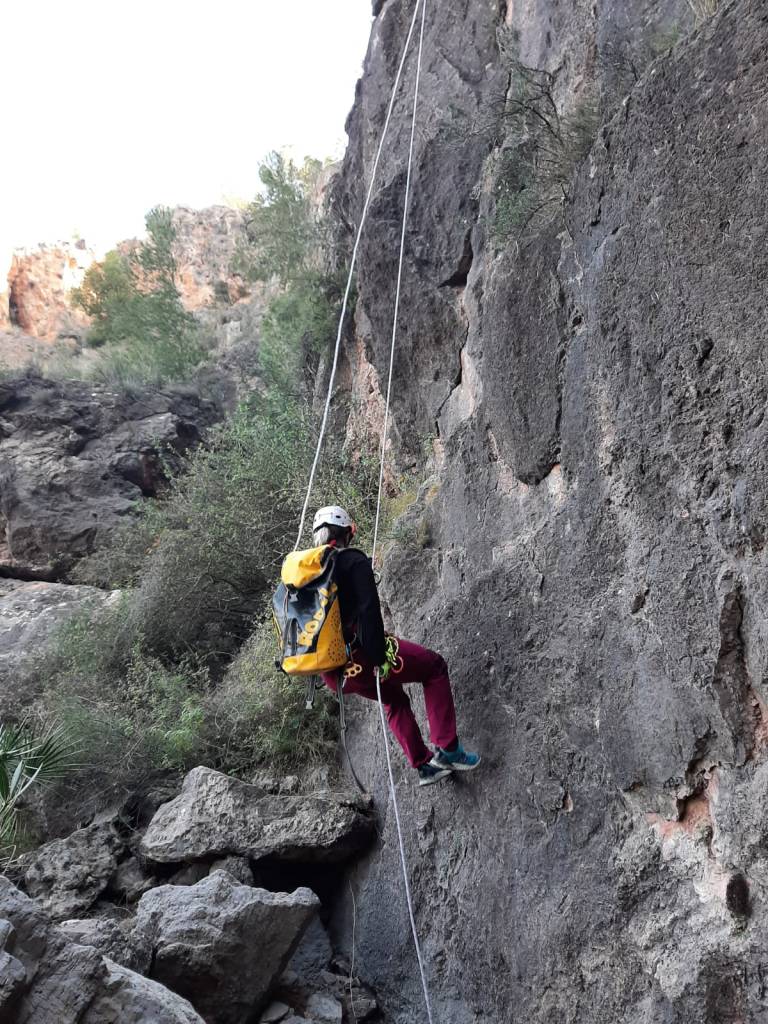 El rápel de 45 metros podemos realizarlo en volado en su cabecera izquierda. Este rápel tambien nos ofrece la posibilidad de realizarlo guiado hasta una instalación que tenemos enfrente.