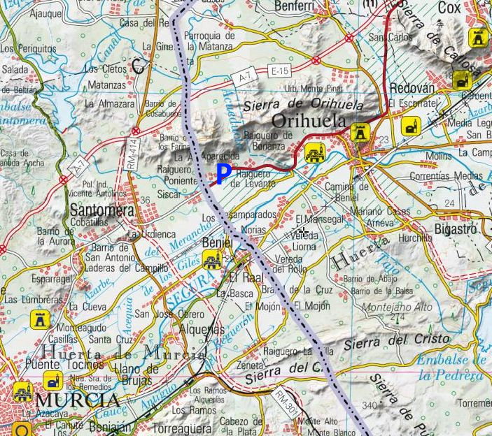 Por la N340 entre Santomera y Orihuela. Entraremos en el pueblo de La Aparecida y nos dirigiremos al cementerio por donde aparcaremos.