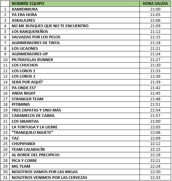 – Horarios de salida de los grupos: Horarios provisionales hasta el cierre de inscripciones (debéis revisarlos mañana por si sufren alguna modificación).