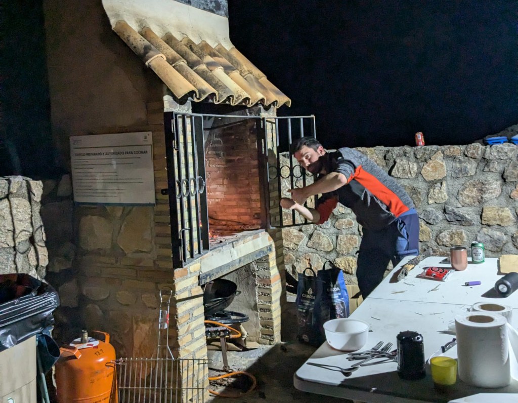 Después de un día intenso Alberto nos preparó una buena barbacoa para cenar, no sin algún problema de por medio, donde compartimos experiencias, anécdotas, cervezas y risas.