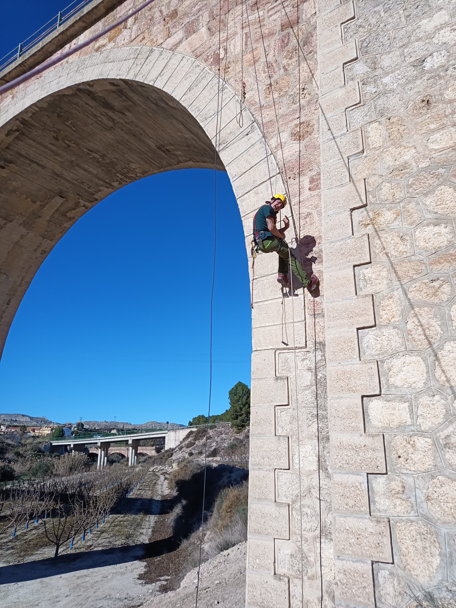 Empezamos el año con un improvisado curso de técnicas verticales en el puente de la Puebla. Descenso por cuerdas fraccionado, ascenso, ascenso fraccionado, cambio de cuerdas… Es muy importante aprender y también refrescar lo que ya sabemos, además de probar nuevo material.