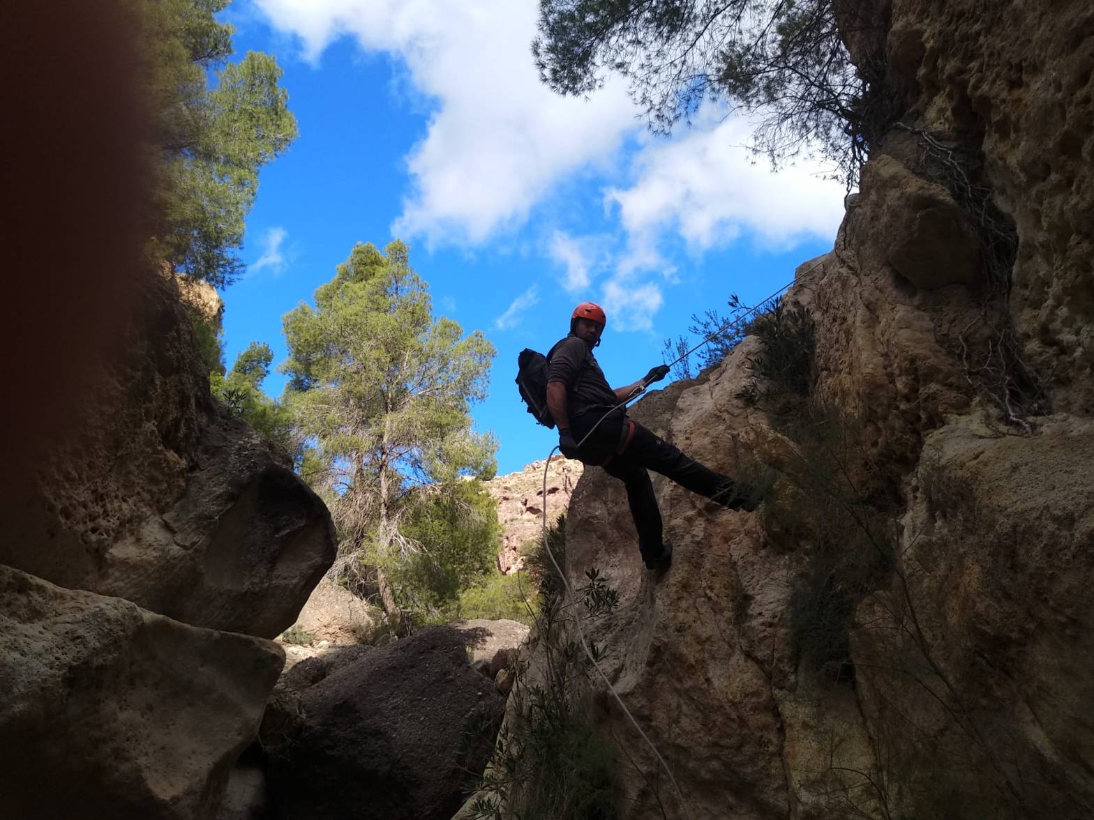 Unos cuantos miembros del Club han ido hoy a este barranco seco muy cercano al famoso estrecho de la Agualeja. Un sencillo pero bonito barranco que tiene en total 7 rápeles, siendo el rápel más largo de 12 metros. La ruta de acceso podemos obtenerla a través de wikiloc en el siguiente enlace: https://es.wikiloc.com/rutas-descenso-de-barrancos/barranco-agualeja-62580731 Población:Sigue leyendo «Barranco de la Agualeja, Aledo (15 enero 2022).»