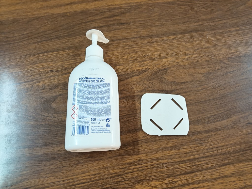 Ahora tienes que recortar un cuadradito del envase y hacerle unas muescas del tamaño de la cinta en diagonal, tal y como se ve en la imagen.