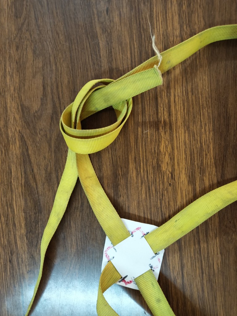 Ahora sólo queda pasar la cinta por el cuadradito y hacer un nudo de cinta plana.